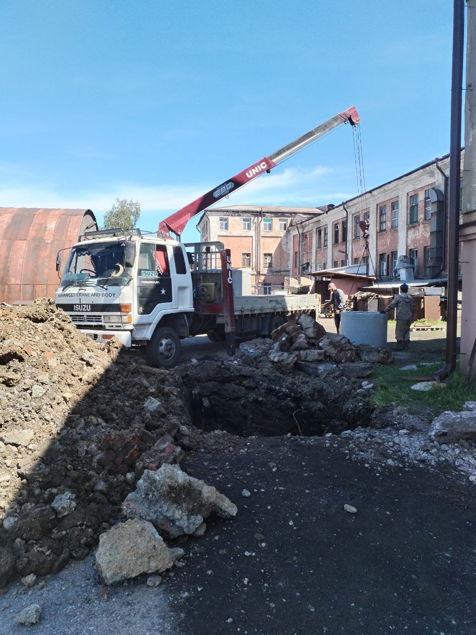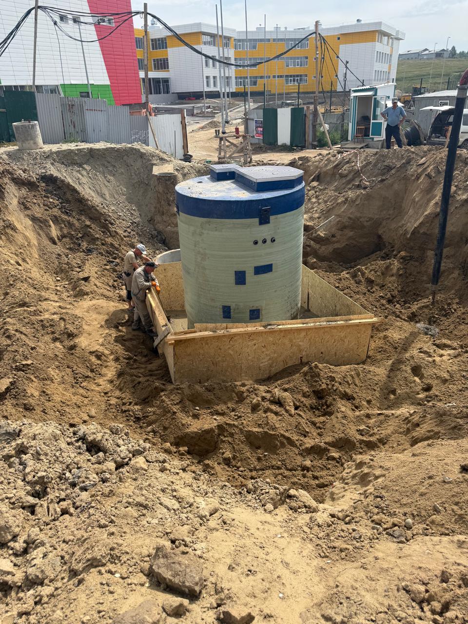 - Подготовка колец — используются железобетонные кольца, в них делают отверстия для труб. После прокладки труб пустоты герметизируют. Кольца устанавливают в котлован поочерёдно, заполняя отверстия цементом. Между кольцами устанавливаются закладные детали в связи с повышенной сейсмической активностью в Иркутском районе.